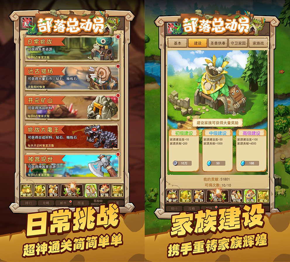 打造绝世强宠 《部落总动员》手游是一款竖版的回合放置战斗手游,带你进入史前。挂机放置的游戏模式,在你忙碌的时候就能自动打怪升级。多样的游戏史前BOSS,让你获得神装征服史前部落!快来进入游戏,与史前萌宠再续未解之缘吧!收集各种各样的史前宠物,它们全都具有潜在的天赋以及能力,你要做的就是挖潜它们的能力,培养它们的天赋