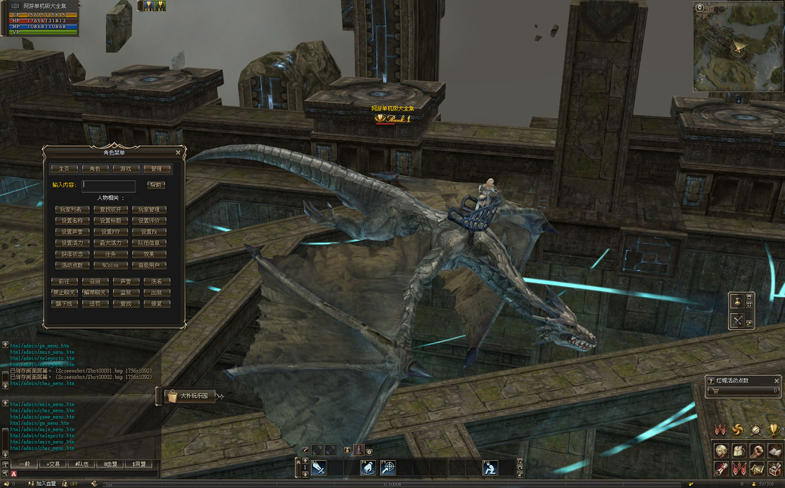 GM变身功能:变身各大怪物BOSS:恶魔公爵、高登、札肯、恶魔公爵、人偶刀手、异教徒、劳库、基亚齐、暴烈龙。